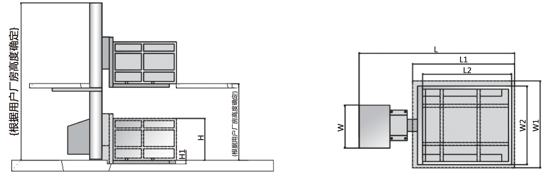 該機主要由立柱、提升平臺及雙控提升系統(tǒng)組成。工作時,將物料或料桶推 入提升平臺中,關(guān)閉安全護欄,開啟提升程序,到位后,開啟另一樓層護欄, 將物料或料桶轉(zhuǎn)移到指定工位。